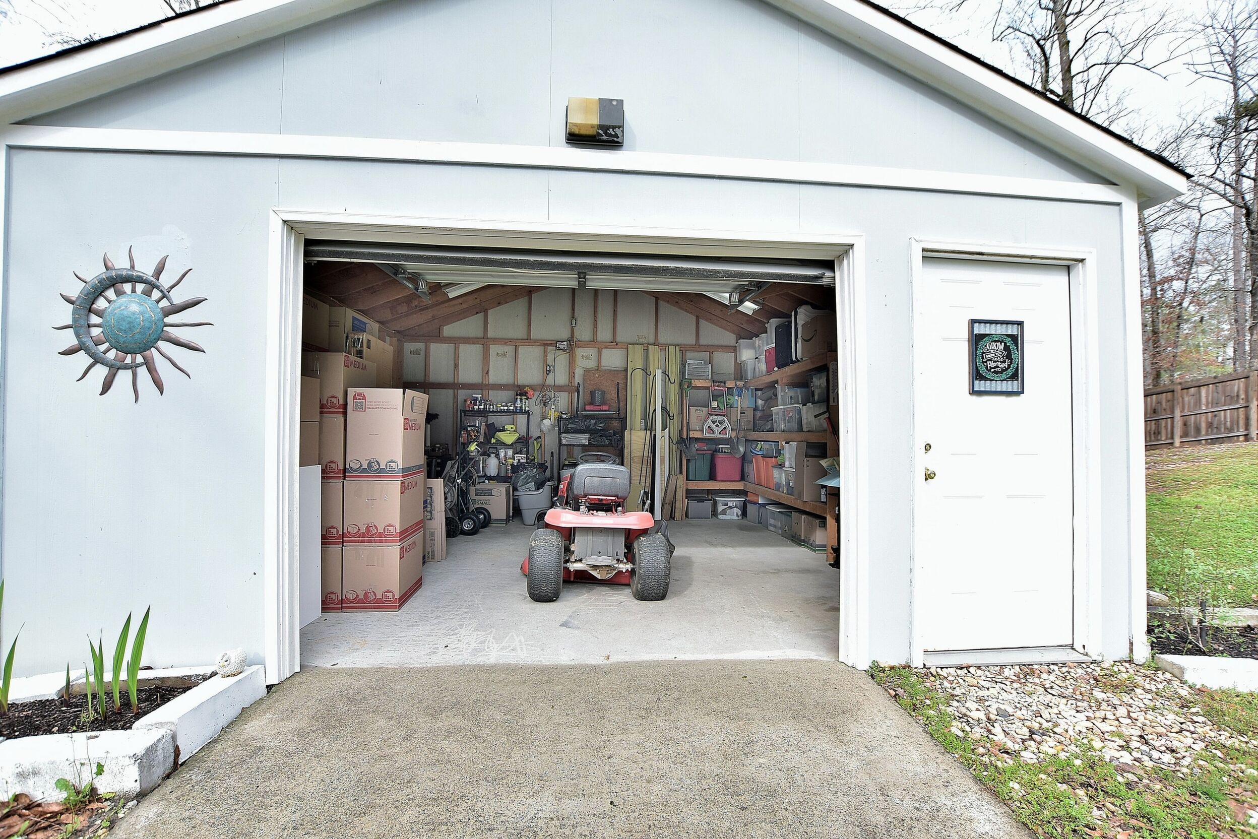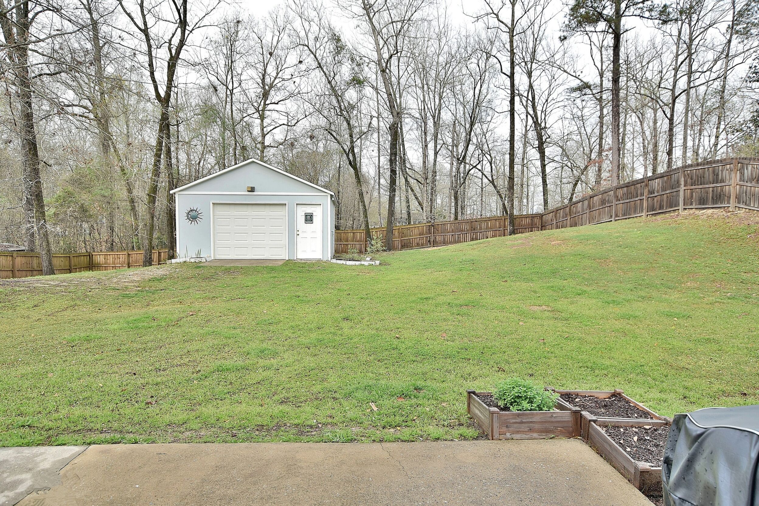 Escape to the tranquility of country living in this cozy yet spacious 1424 square foot 3-bedroom contemporary ranch. Step inside the freshly painted front door to an open floor plan, highlighted by elegant trey ceilings. The kitchen is ready for your culinary adventures with freshly painted kitchen cupboards and a new refrigerator. Enjoy plush new carpet in all three bedrooms and rest easily with 5 new smoke alarms. A new heat pump ensures year-round comfort and updates extend to 2 new toilet seats, as well as new door handles & deadbolts throughout. The freshly painted guest bath has a brand-new faucet, the primary bath boasts a stunning accent wall, and the office closet also received a fresh coat of paint. Beyond the main house, a 324 square foot garage with large built-in storage shelves and electrical power is perfect for use as a dedicated workshop for hobbies and DIY projects. Three new outdoor GFIC outlets make outdoor entertainment and projects a breeze. The generous half-acre lot offers plenty of space for relaxation & play and a 6-foot privacy fence creates a secluded backyard oasis. Thorny brush was cleared, the front yard was leveled, and a hill in the backyard has been professionally regraded to give it a gentle slope. A Catnip bed helps repel mosquitos while cinderblock garden beds showcase elegant gladiola and thriving blueberry bushes.